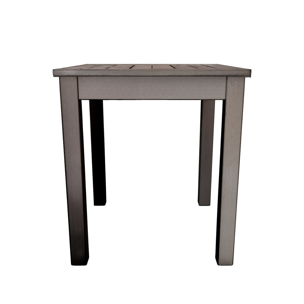 This end table is a stylish outdoor piece with staying power. Built for longevity with Weatherwood, a synthetic material with the appearance of wood, it indulges you in contemporary design without sacrificing durability. Stunning form and can’t-miss function—with this table, endless days in the shade await.