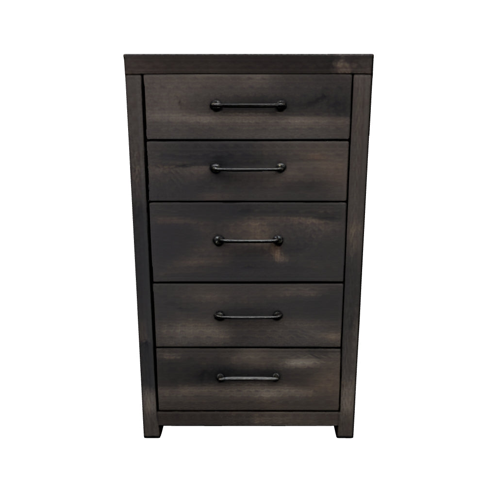 This chest of drawers puts a casually chic twist on everyday function. Its rustic charcoal finish pairs well with other neutrals and pops of color alike, giving you the flexibility to change up your aesthetic as you please. Smooth-gliding drawers keep clothes and bed linens stored in style.