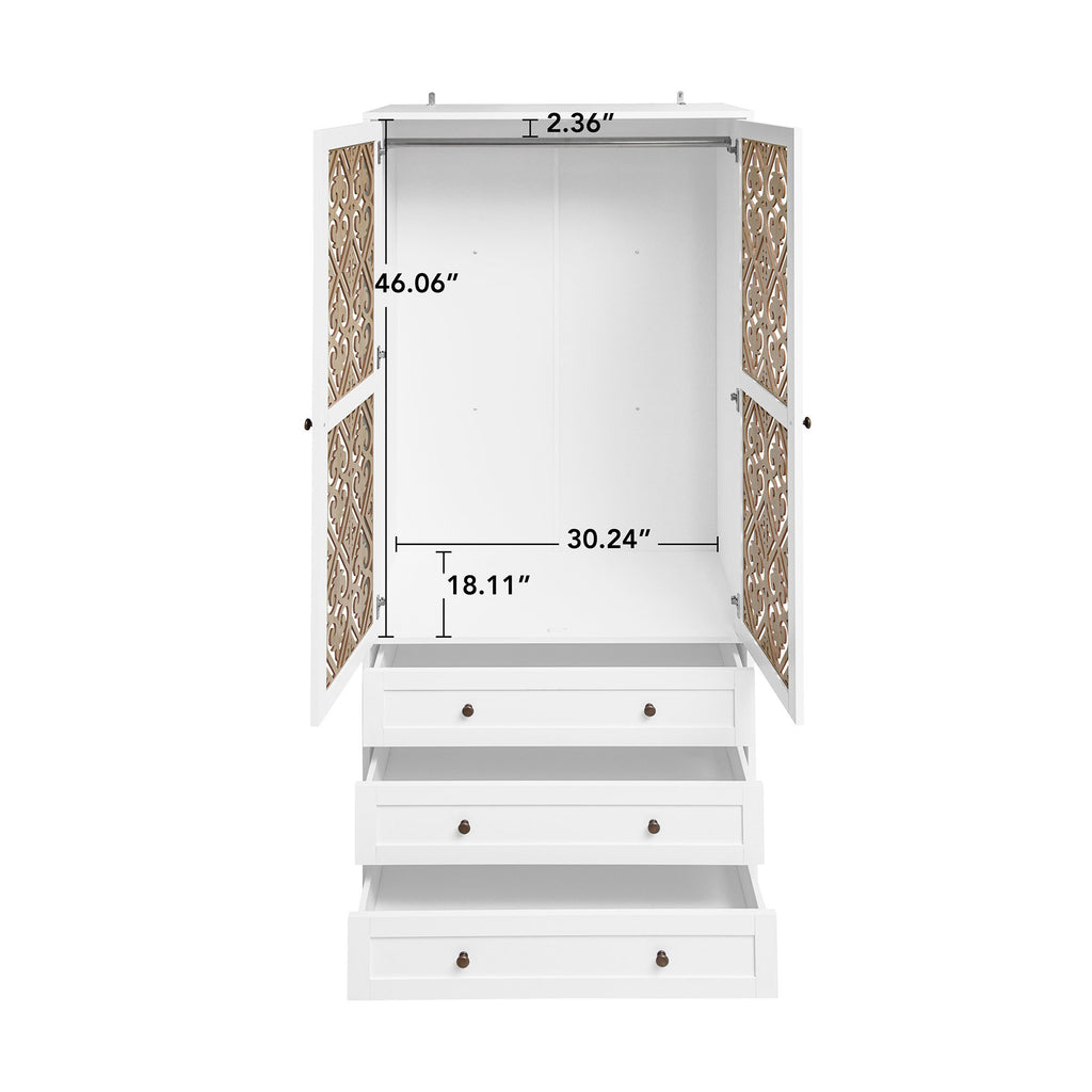 - Built-in clothes hanging rod for convenient storage: A built-in clothes hanging rod is designed above the wardrobe to easily hang clothes and accessories, save space, and increase storage function.