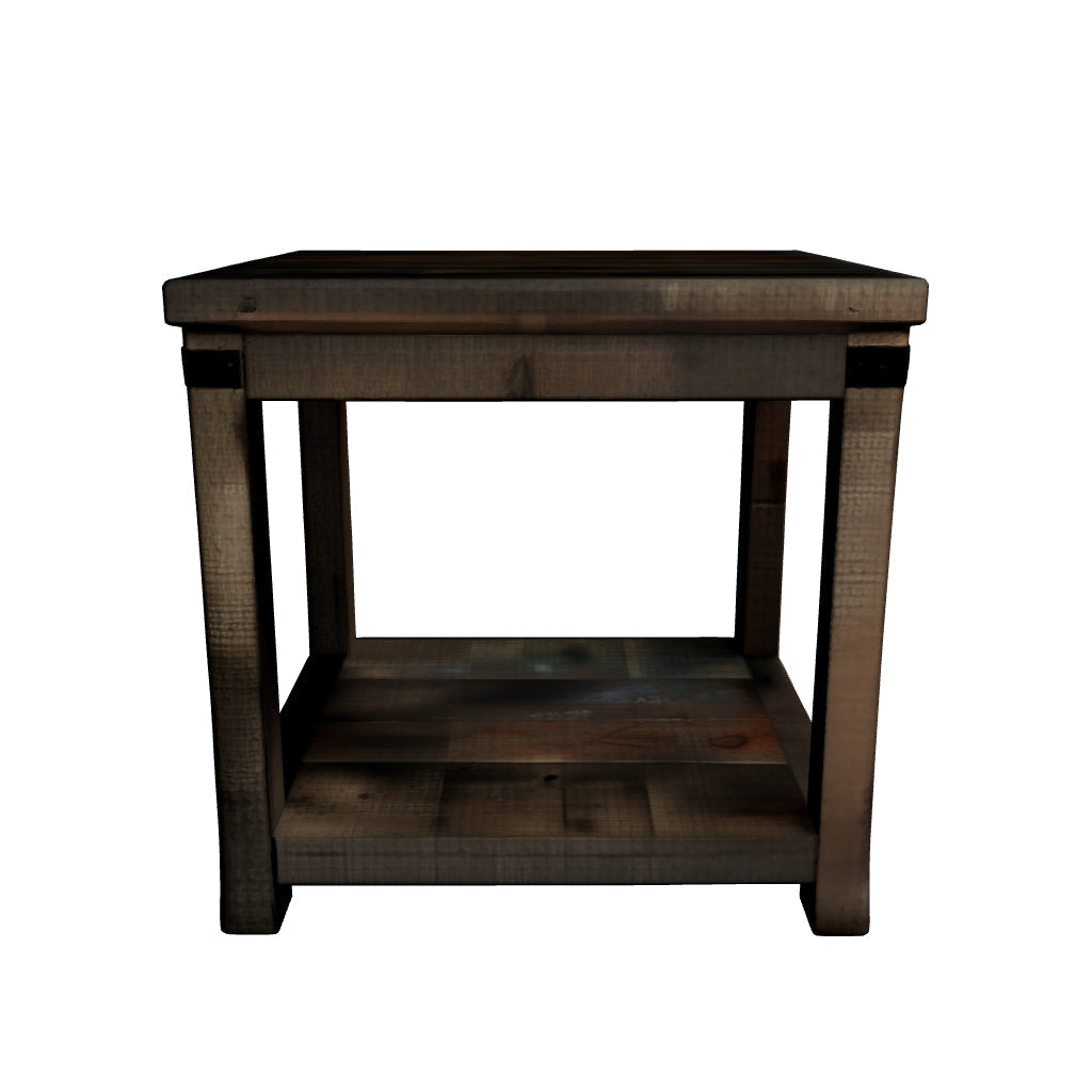 Keep your aesthetic chic and approachable with this charming end table. The piece has an effortless beauty, with a replicated aged barn wood pattern and matte black metal accents adding vintage-inspired elegance. Combining elements of fashion and function, the lower shelf is ideal for displaying decor or holding a storage basket.