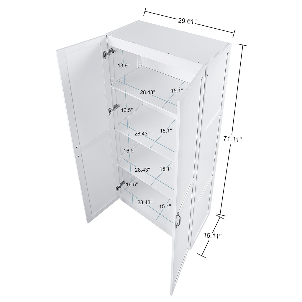 - Upon assembly, Storage Cabinet Dimensions Measure: 29.61 in. Length, 71.11 in. Height, 16.11 in. Depth.