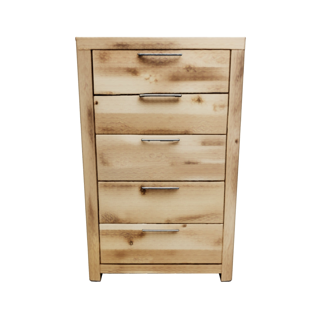 Inspired by natural beauty, refined to perfection. This chest of drawers brings cozy outdoor vibes to your bedroom with its warm and inviting golden rustic finish. Handles in an antiqued gunmetal hue adorn the five drawers on its framed front, adding an industrial touch to the simple, streamlined design.