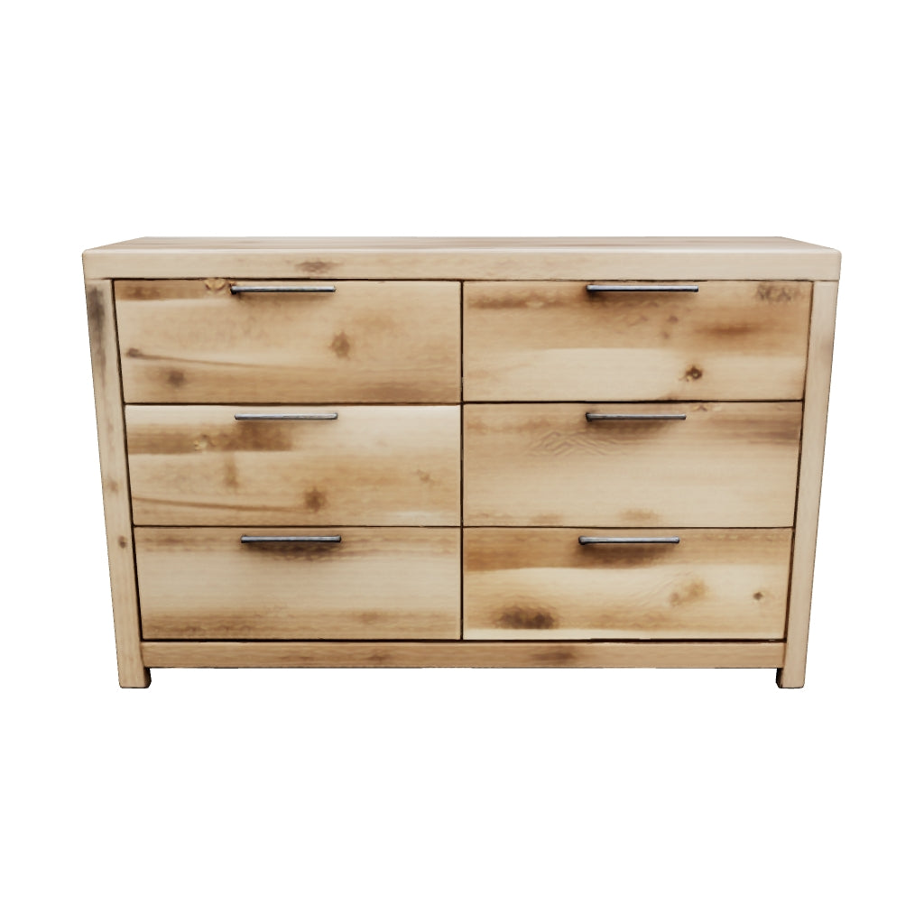 Inspired by natural beauty, refined to perfection. This dresser brings cozy outdoor vibes to your bedroom with its warm and inviting golden rustic finish. Handles in an antiqued gunmetal hue adorn the six drawers on its framed front, adding an industrial touch to the simple, streamlined design.