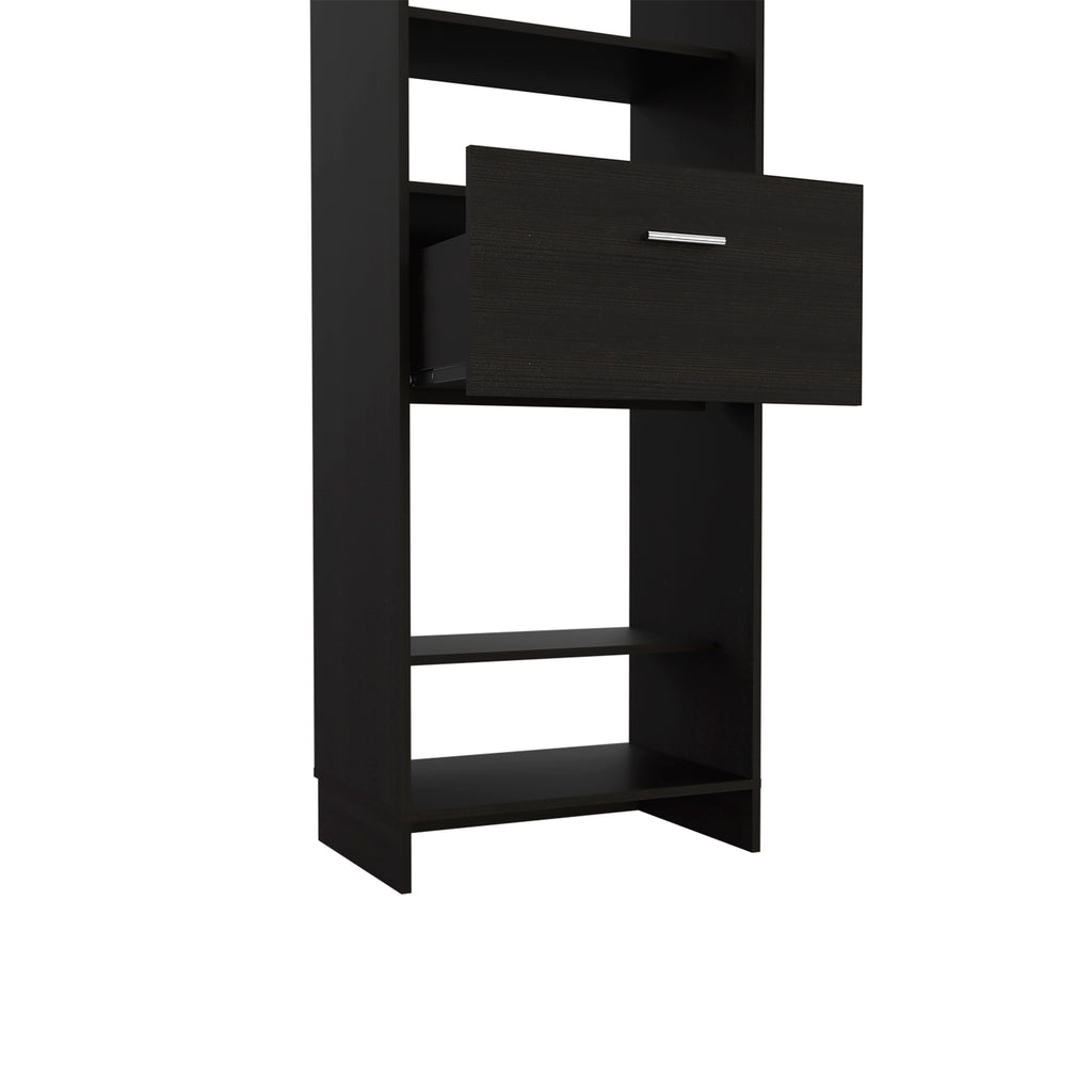 - Multiple open shelves ideal for folded clothes, shoes, accessories, or decor