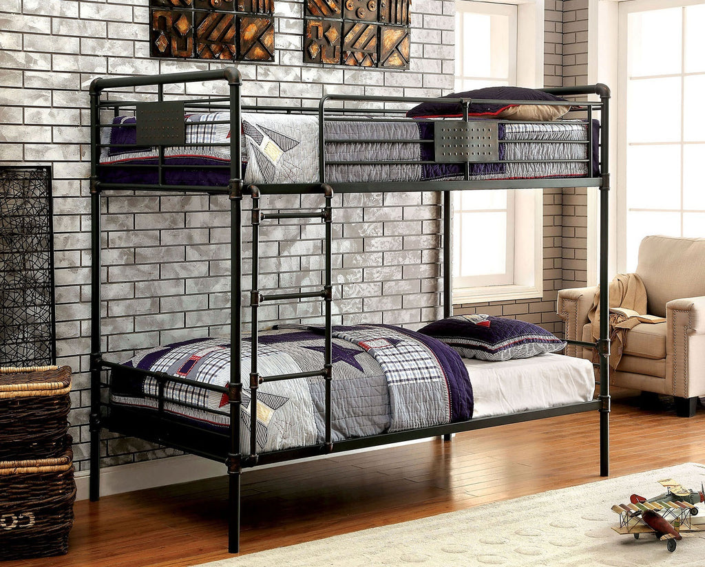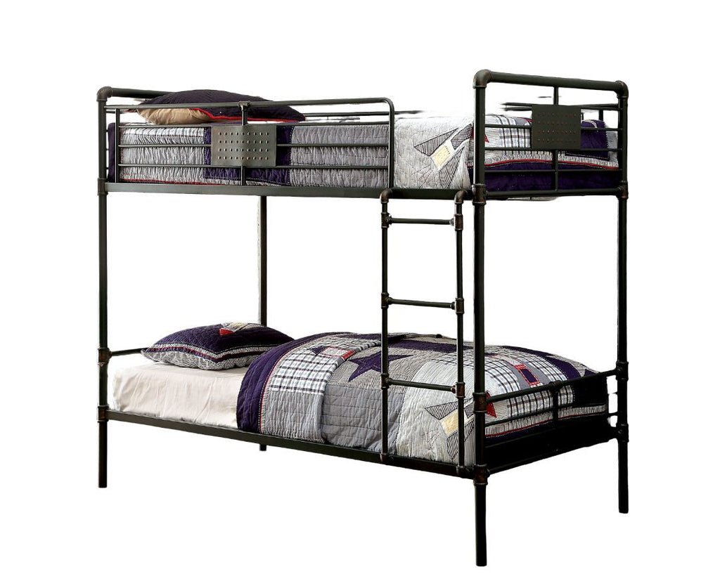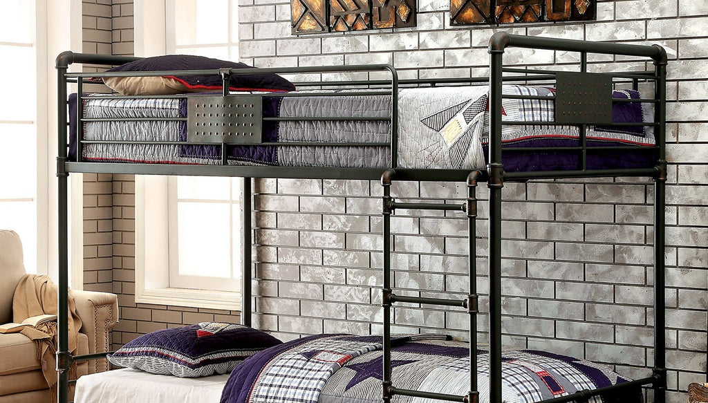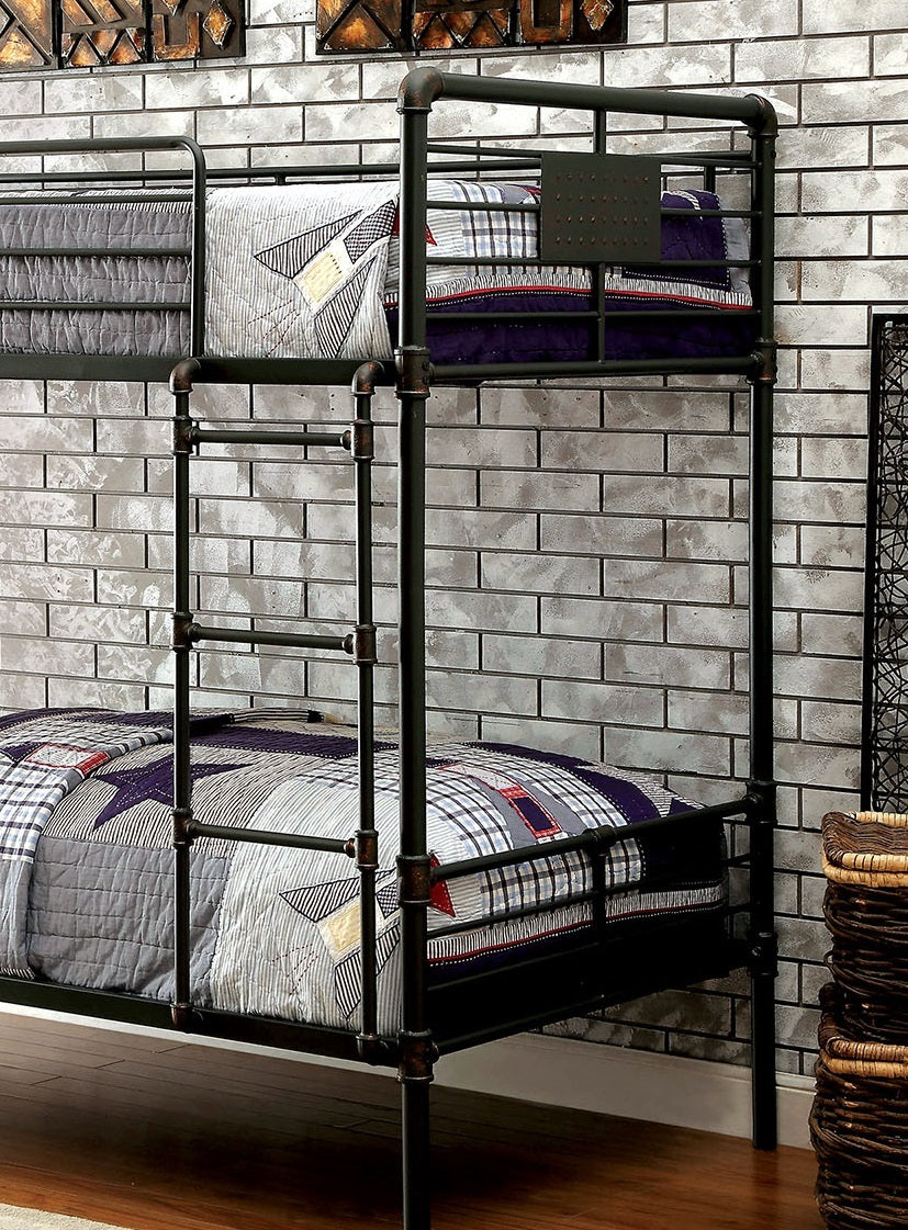 Take it back a few decades with this industrial inspired bunk bed. The visible piping framework is finished with an antique black to create an authentic throwback atmosphere. Built-in slat kits and ladder access makes this structure a perfect fit for immediate use.
