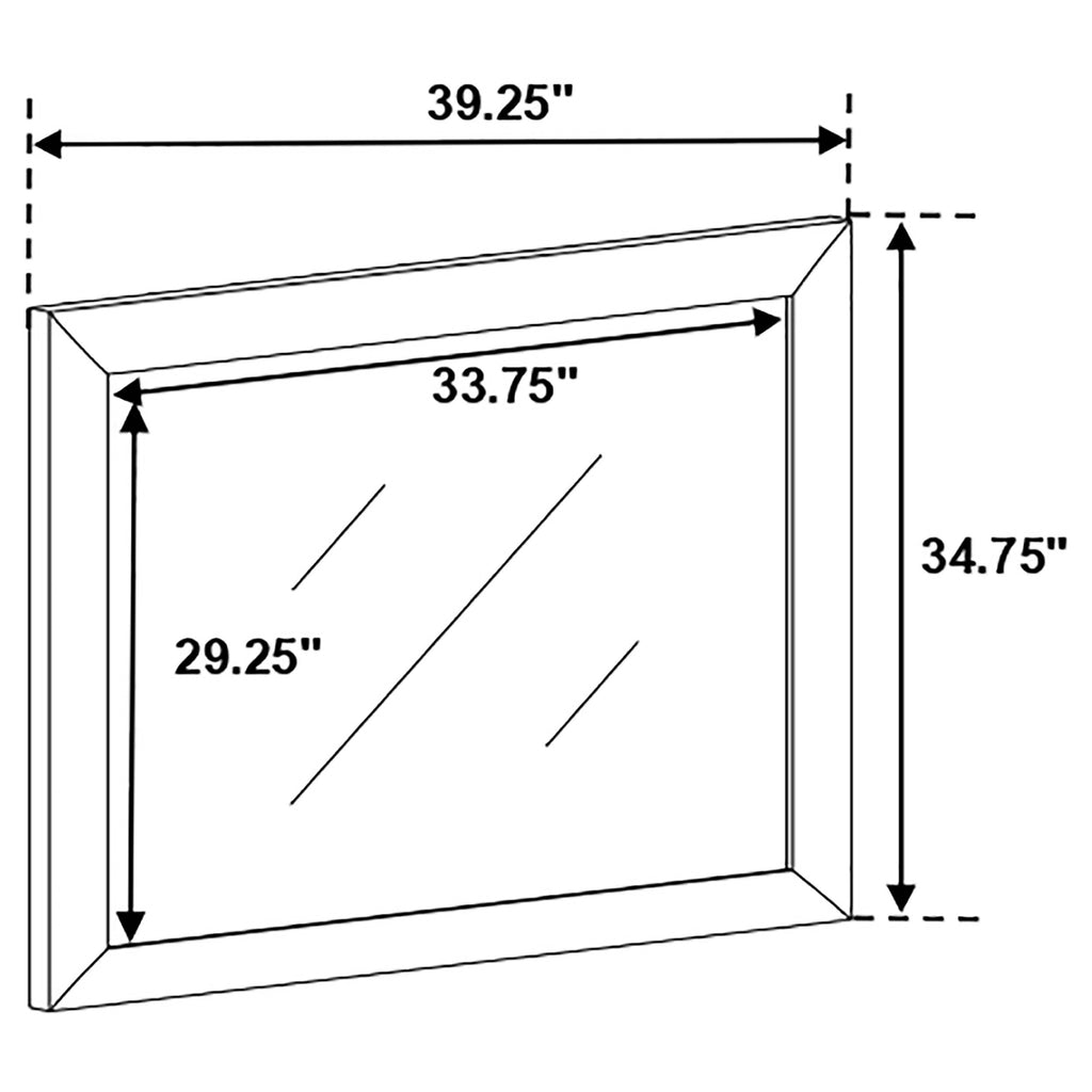 | Dresser mirror Dimensions | 34.75 inches high x 39.25 inches wide x 1.25 inches deep |