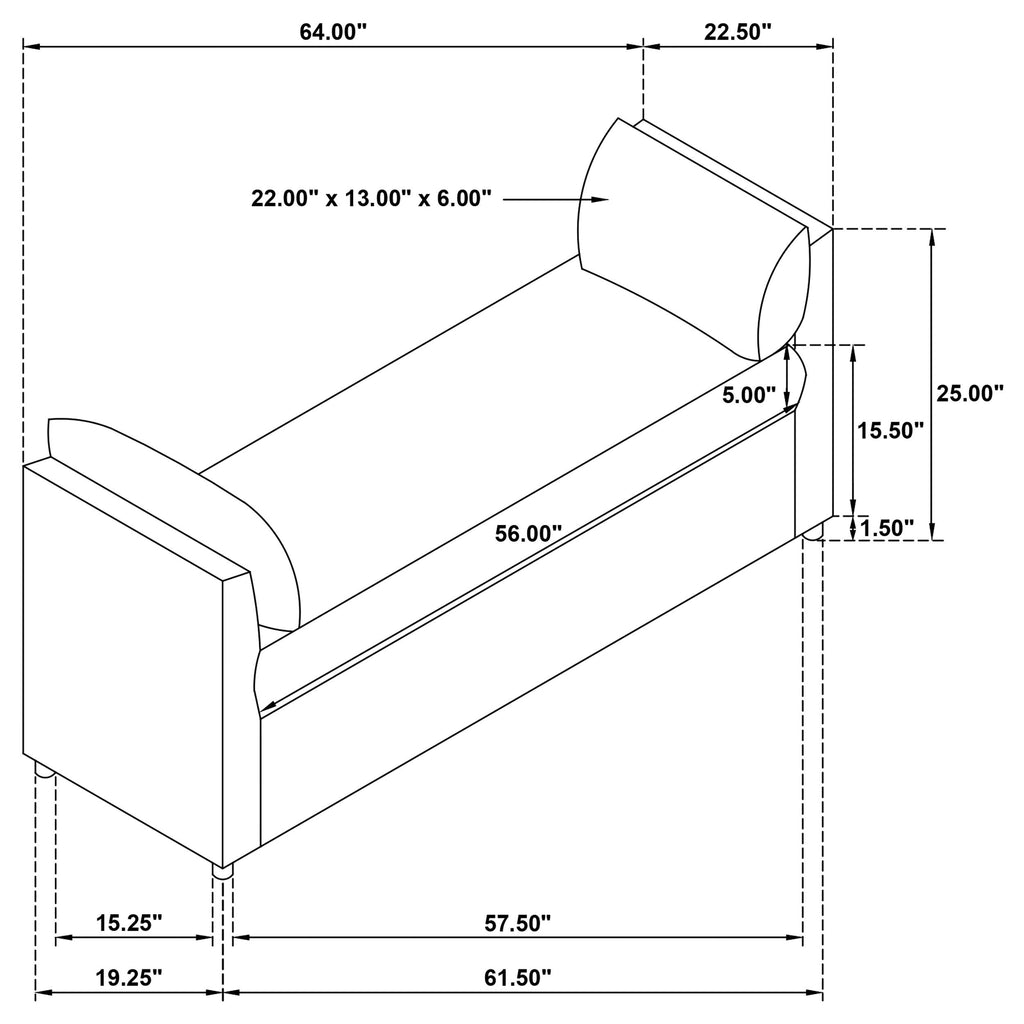 - Small round legs elevate the bench slightly, adding a touch of lift while maintaining a seamless and elegant appearance