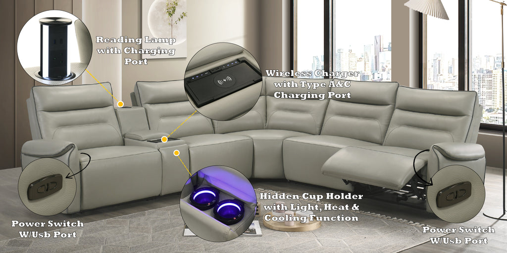 - Wireless Charger W/Type A&C Charging Port, Hidden Cup Holder W/Light, Heat & Cooling Function