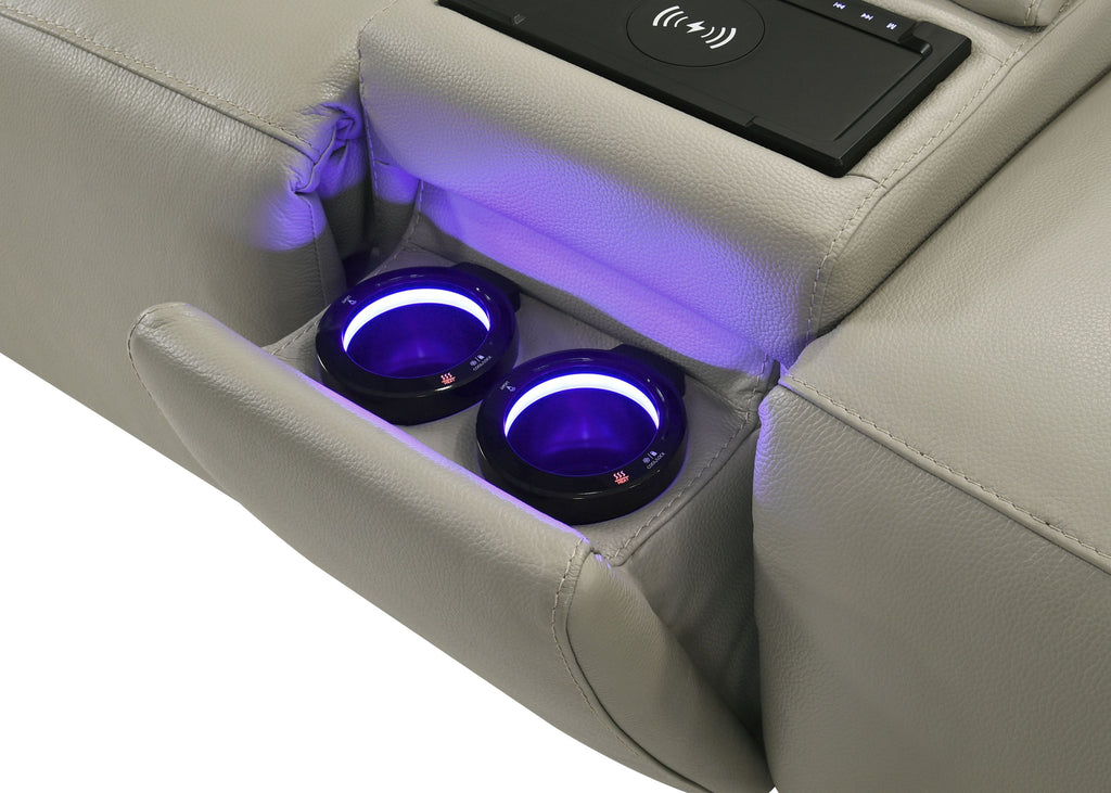 - Cup Holder & Storage, 2 USB, Speaker media wireless tray with reading lamp &cooler & cupholder