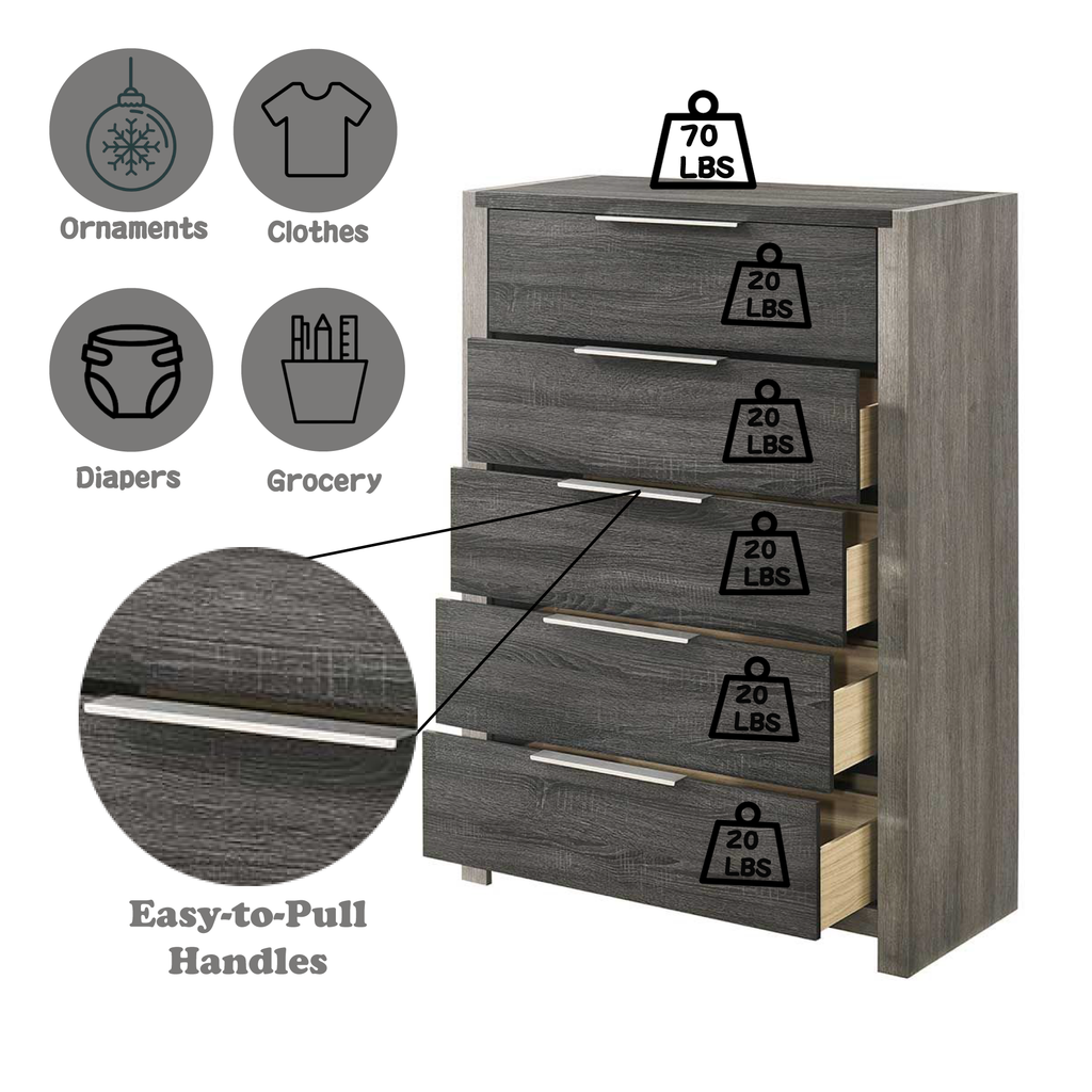 - 5 Storage Drawers, Drawer Inner Dimension: 31'L x 12'W x 5'H