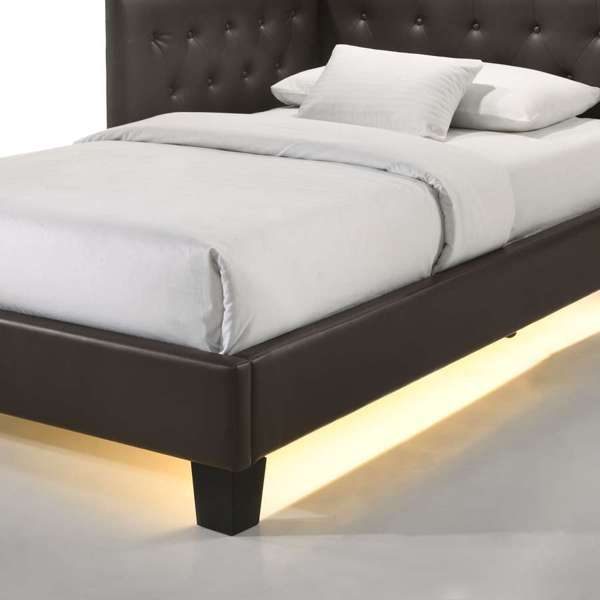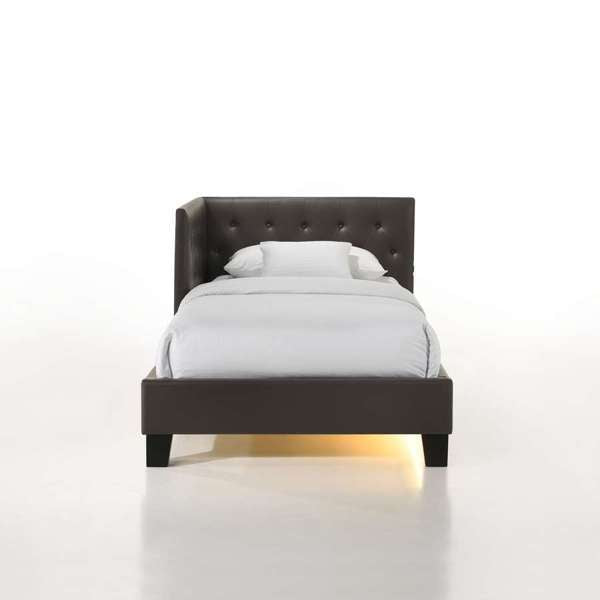 Introducing the Julesburg Twin Corner Bed, a stylish fusion of modern design with traditional touches. This elegant bed features button tufting on the headboard, upholstered in rich brown faux leather, creating a sophisticated focal point. Convenient USB A & C ports on the headboard ensure your devices are always charged and ready. Censor lights under the bed provide subtle, practical illumination for nighttime. Designed for easy accessibility for all ages, the Julesburg Twin Corner Bed offers both functionality and luxury. Transform your bedroom with this beautifully crafted piece that seamlessly blends timeless charm and contemporary convenience.