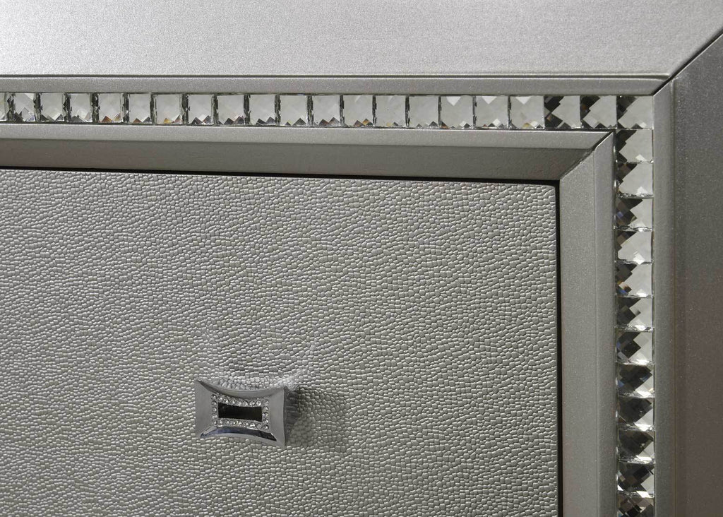 - Modern Design: Enhanced with a wooden frame featuring sparkling crystal-like trim and embossed texture fronts, adding a touch of glamour to your bedroom décor.