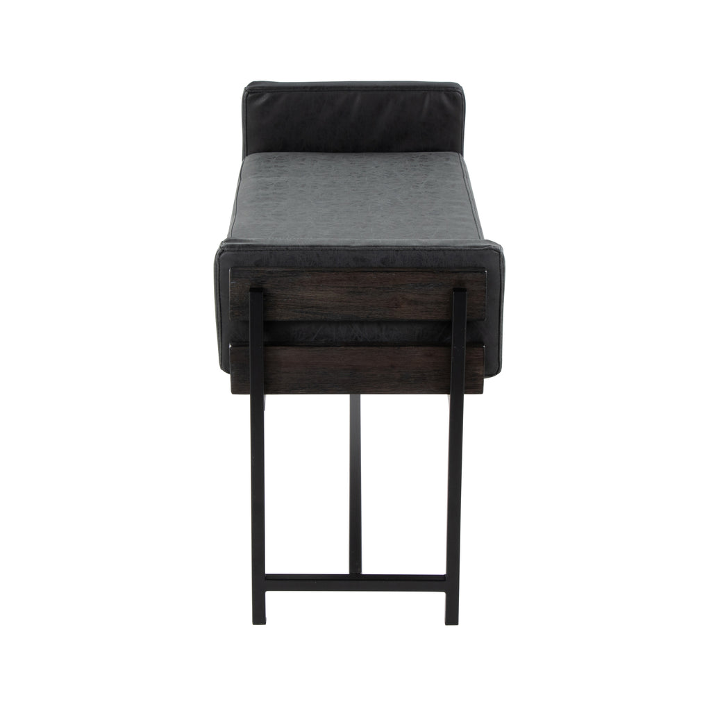 - Farmhouse yet luxe, the Kari Bench by LumiSource is a stunning compliment to any room. The wood panel accent and metal frame contrast a beautifully upholstered seat. This bench is perfect for any entryway, dining room, or living room. Available in faux leather or woven fabric upholstery.