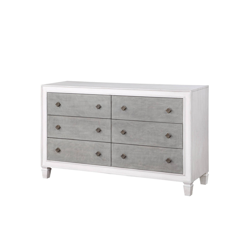 - This transitional dresser combines classic craftsmanship with a modern edge, designed to elevate any bedroom with both style and function.