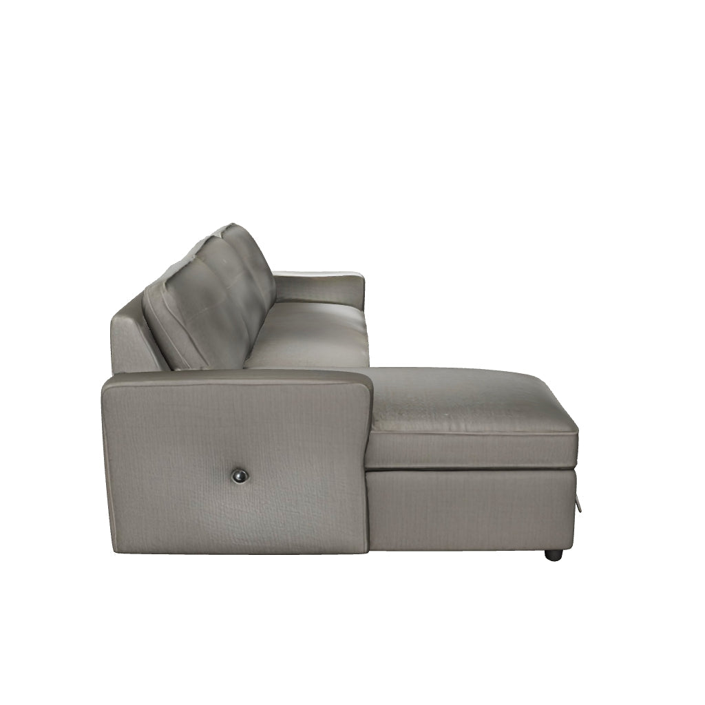 This sectional with pop up bed is an essential for small spaces and hosts with the most. The multifunctional piece is fashioned with dark gray upholstery that suits styles from transitional to modern. Its pop up bed provides extra sleeping space for guests or simply a spot to spread out on your own. An integrated USB port keeps devices nearby and charged up for limitless lounging. Doubling down on convenience, you can effortlessly access your linens, throw blankets and more courtesy of storage space in the chaise.