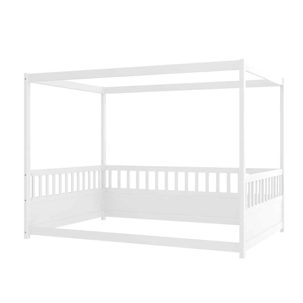 - 【Children's Style Drop-down Roof Bed】This wooden canopy bed is equipped with full-length support at the top. You can add curtains that your child likes to create a cozy sleeping space, or decorate this drop-down bed with colorful flags, lights or photos...