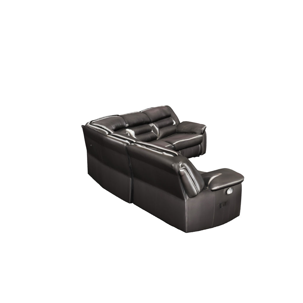 You could play it safe. Or you could choose to stand out in the crowd with this brilliantly styled sectional with power. Ultra cool, ultra contemporary and ultra comfortable, this fashion-forward sectional sports a fabulous faux leather enhanced with contrasting stitching that’s right on point. Rest assured, sumptuous pillow top armrests and sleek channel cushioning feel every bit as good as they look. Enlightened elements include a power control with USB plug-in and blue LED lighting (by the cup holders) to create a home theater experience worthy of A-listers.