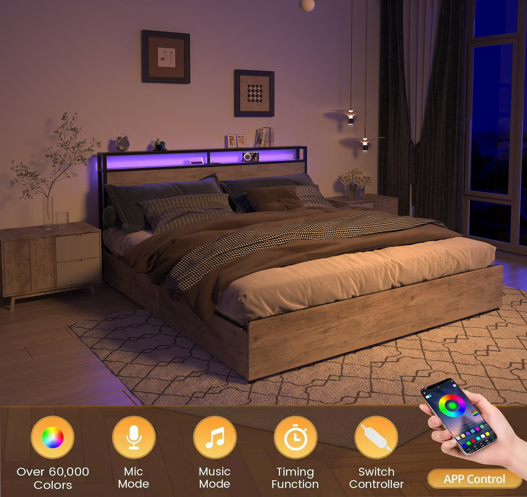 - Smart LED Bed Frame Bed frame queen size with multifunctional LED lights strips, beautiful 16 RGB LED Light colors (There are over 60000 colors to choose from), You can freely set the brightness, color, mode and timing functions to create various scenes and make your life more intelligent.