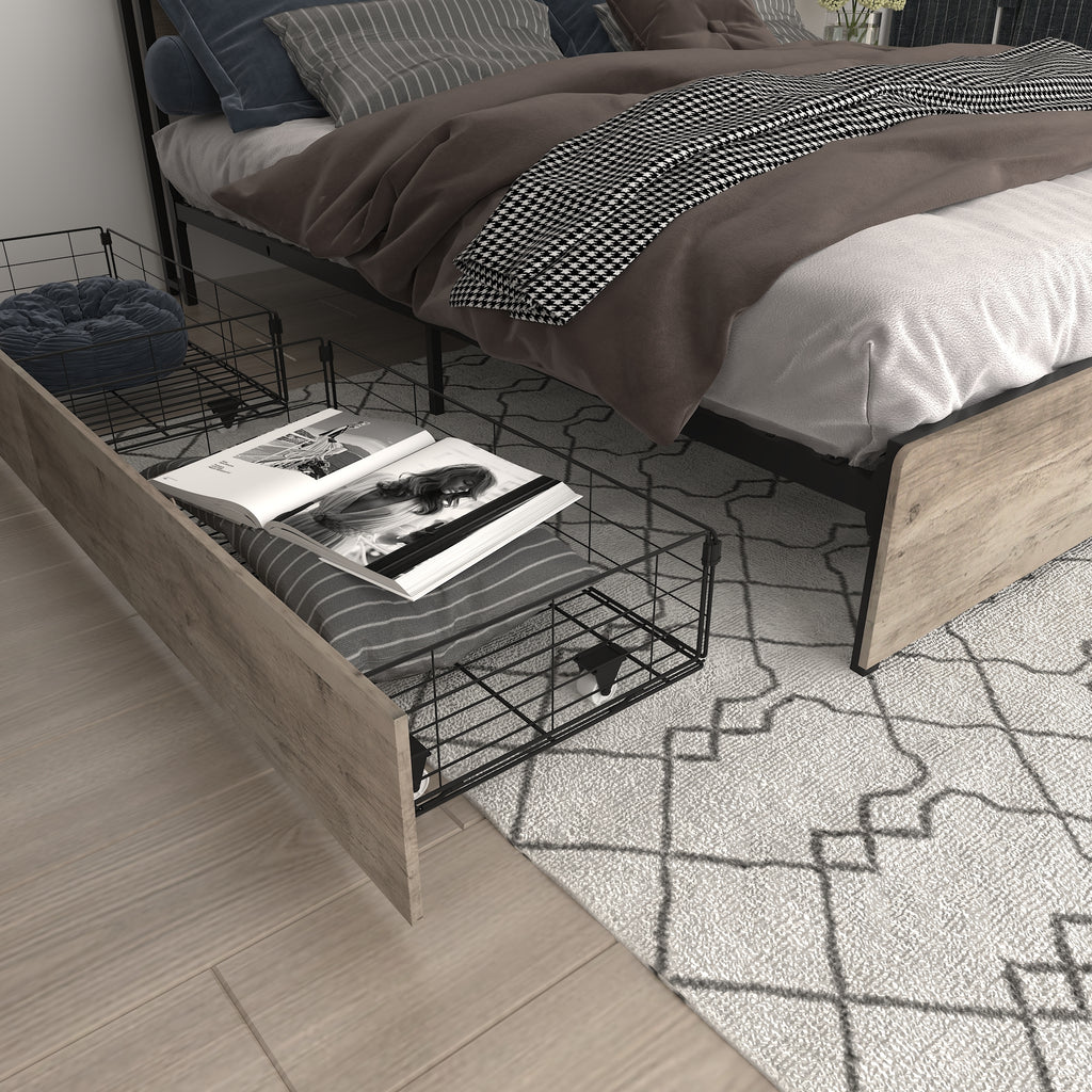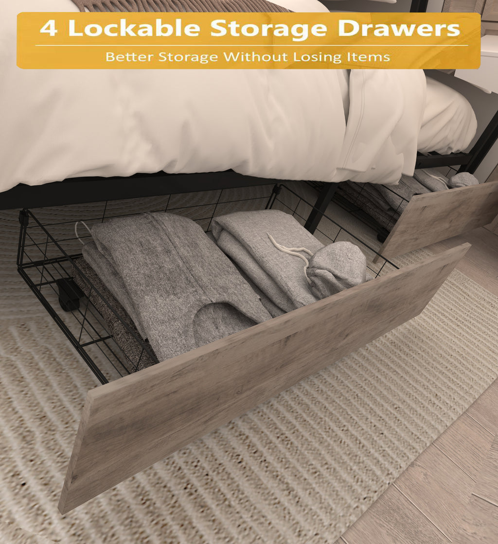 - Practical Storage Bed 4 storage drawers provide ample storage space, perfect for storing clothing, pillows, sheets and bedding items. With pulleys, drawers slide in and out easily, even on shag carpet.