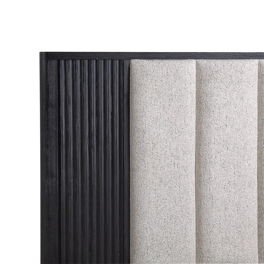 Elevate your bedroom with this contemporary King size bed, featuring a chic black finish and plush upholstered headboard. Crafted from durable wood, its elegant design offers a comfortable backrest and stylish centerpiece. This SEO-strong bed frame transforms your space into a modern sanctuary.