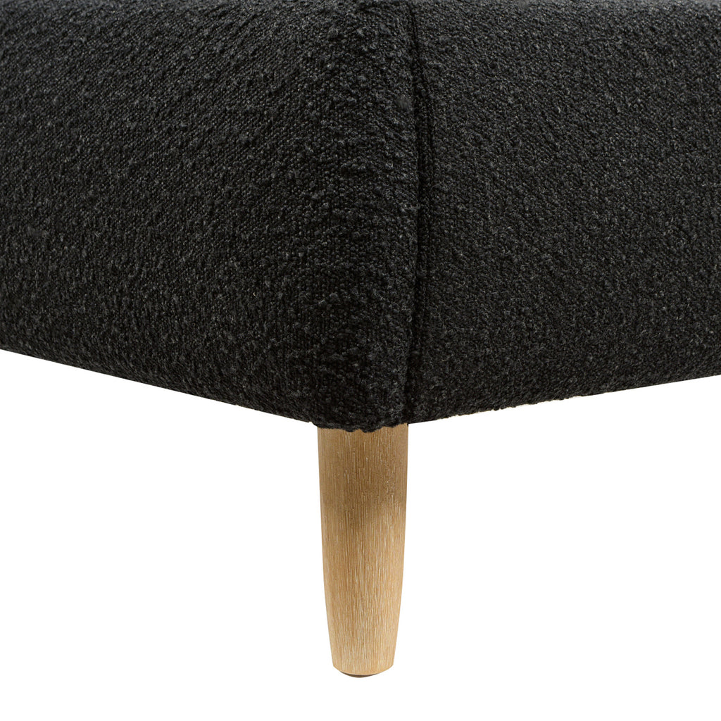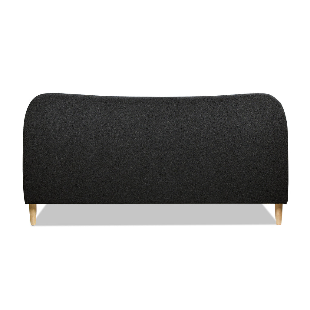 - Faux sherpa-like boucle upholstery is cozy and adds interesting texture