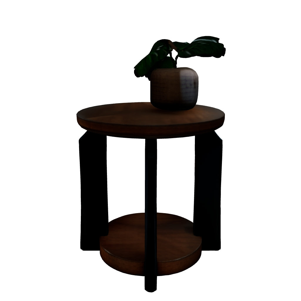 Experience the captivating allure of this end table, an effortless blend of casual and refined aesthetics. Its two-tone finish combines satin black with a rich brown wood tone for a modern, relaxed vibe that you'll love. Perfectly suited for your contemporary home, it offers open storage to accommodate your favorite books and accessories. Your search for simple, chic design ends here.