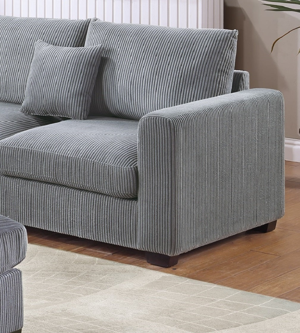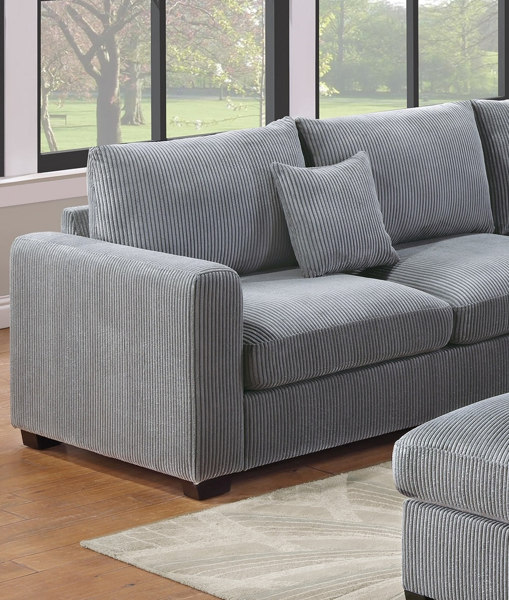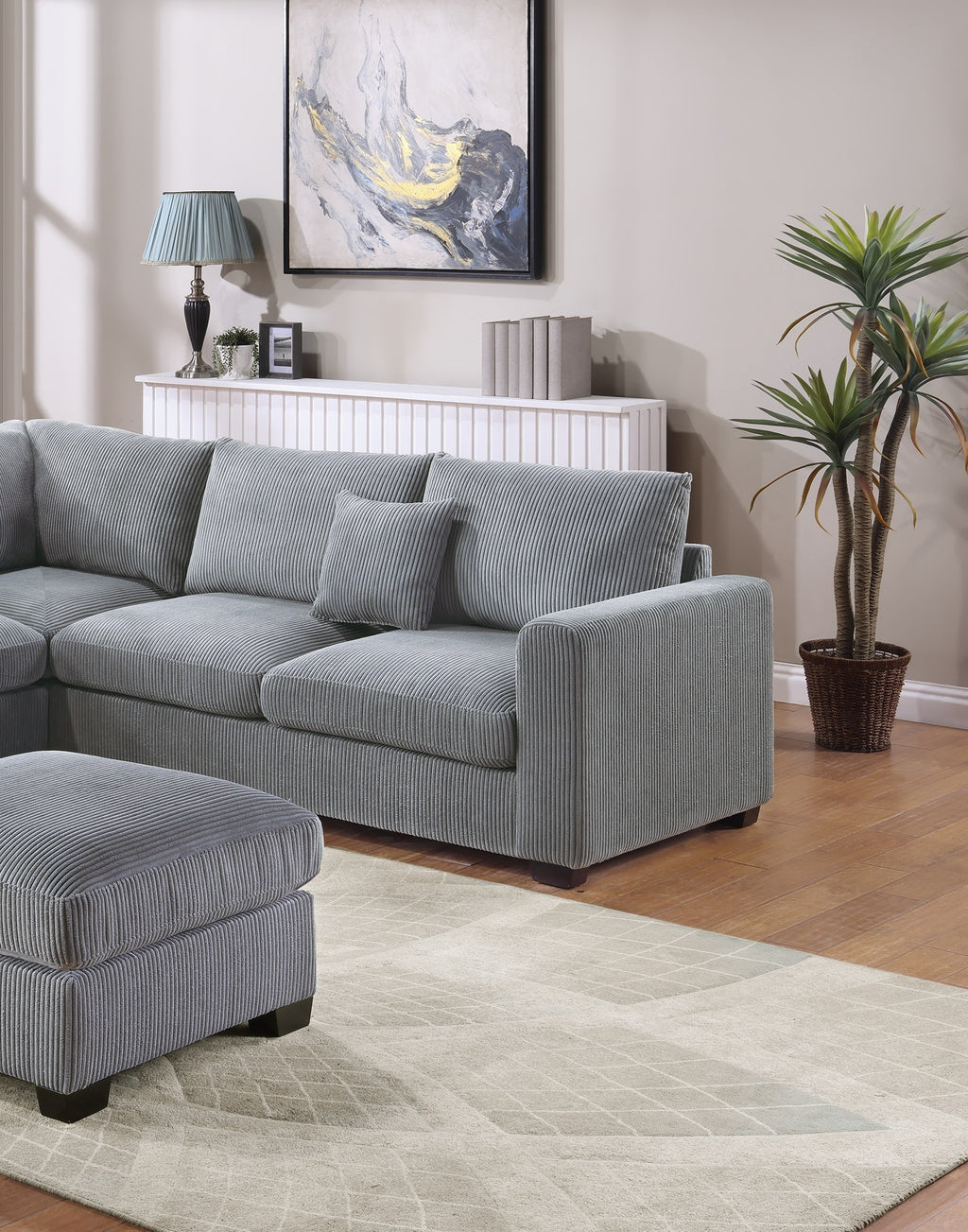 This plush L-shaped sectional is a spacious gathering spot to entertain friends and family. The sectional stands in low legs that are just barely visible giving it its modern look. It's wrapped in super soft corduroy in a warm neutral hue that makes it even more inviting to family and friends.