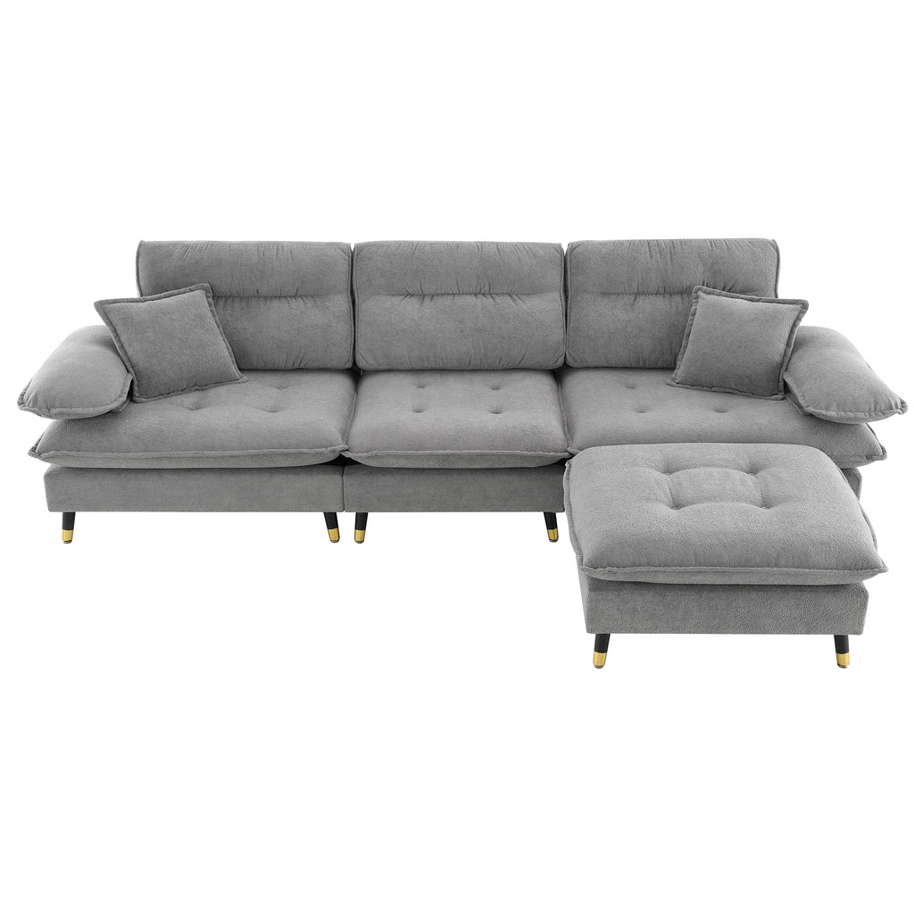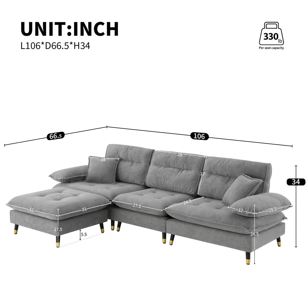 - Versatility: The L-shaped design of the sofa offers ample seating space and flexibility in arranging it to fit different room layouts. The accompanying movable ottoman adds versatility, allowing you to adjust and customize your seating arrangement according to your needs.