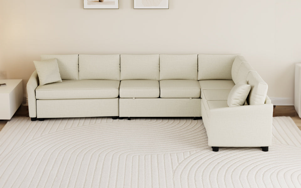 - L-shaped Sectional Sofa - Designed in an L shape for essential space saving and functionality, capable of fitting into cornered walls and providing extended seating space. It can meet your various needs and no longer worry about unexpected guests.