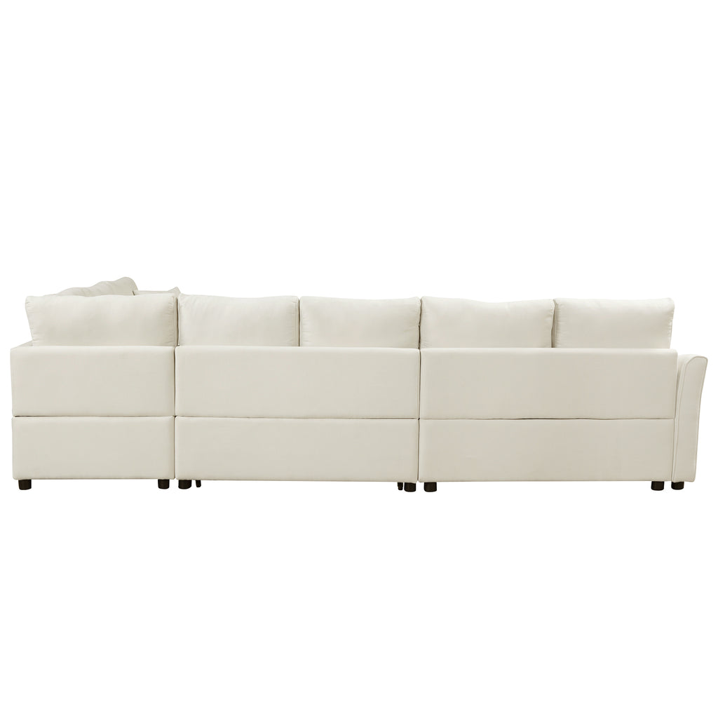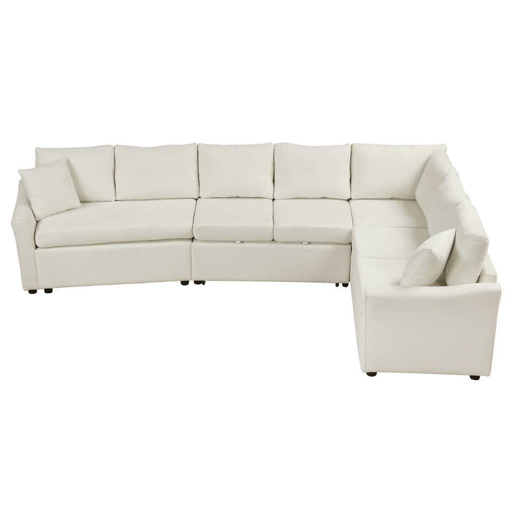 | Overall Dimension | Overall:124.8'D x 78.3'W x34.6'H Left Loveseat :49.6'D x 29.1'W x34.6'H Middle Loveseat (with Sofa Bed):46.5'D x 29.1'W x34.6'H Corner Sofa:29.1'D x28.7'W x34.6'H Lounge:49.6'D x 29.1'W x34.6'H Pillow:14.5'x 14.5' Pillow Thickness:5.5' Backrest Thickness:5.5' Cushion Thickness:5.5' |