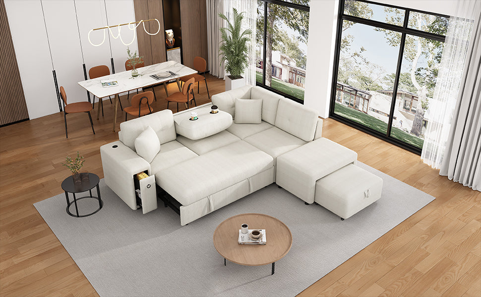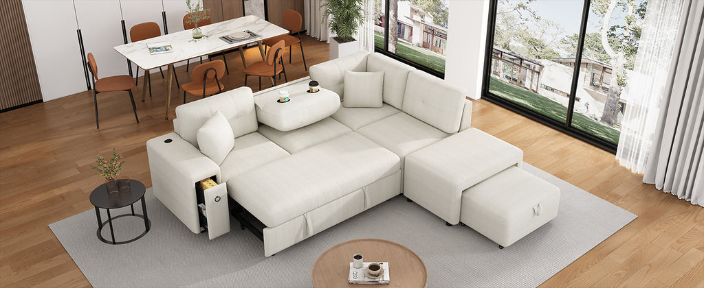 - Drop-down Table with Cup Holders - This convertible sofa features a drop-down table with integrated cup holders located beneath the backrest, perfect for placing drinks and snacks while you relax.