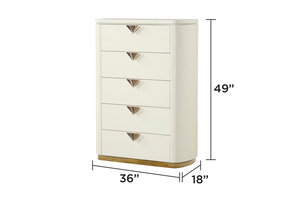 Elevate your bedroom with the luxurious 5-piece set, offering everything in the 4-piece set plus a spacious chest. This collection is designed with modern elegance in mind, featuring high-gloss finishes, metallic accents, and practical storage solutions. The dresser, nightstand, and chest provide ample storage with soft-closing drawers and metallic handles that stand out in style. The illuminated mirror enhances the room's atmosphere, reflecting light and adding depth to your space. This set is ideal for those looking to combine sophistication with functionality in their bedroom.