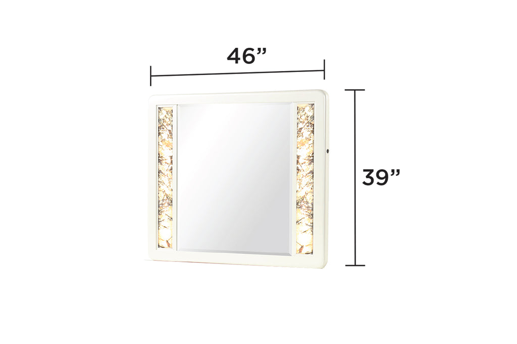 Elevate your bedroom with the luxurious 5-piece set, offering everything in the 4-piece set plus a spacious chest. This collection is designed with modern elegance in mind, featuring high-gloss finishes, metallic accents, and practical storage solutions. The dresser, nightstand, and chest provide ample storage with soft-closing drawers and metallic handles that stand out in style. The illuminated mirror enhances the room's atmosphere, reflecting light and adding depth to your space. This set is ideal for those looking to combine sophistication with functionality in their bedroom.