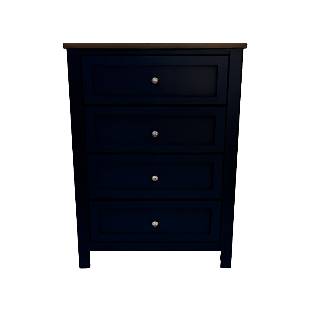 Add homespun charm to your restful retreat. A modern take on a timeless silhouette, this chest of drawers pairs a dark slate blue finish with a light brown top. Drawer fronts and legs in a classic Shaker style bring an air of beautiful simplicity to the bedroom. Whether it's part of a charmingly curated guest suite or a casually carefree kids room, this chest is a welcome addition.