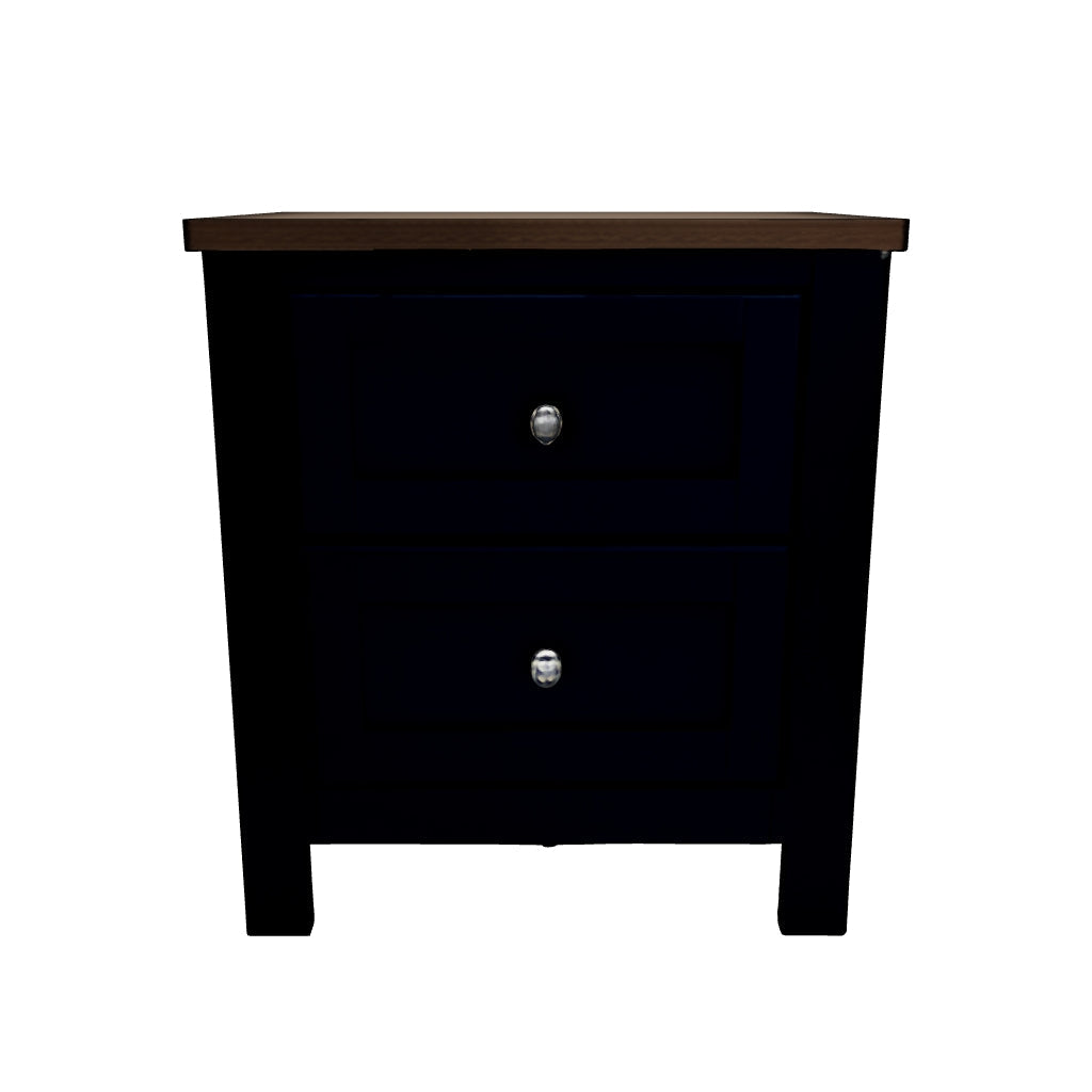 Add homespun charm to your restful retreat. A modern take on a timeless silhouette, this nightstand pairs a dark slate blue finish with a light brown top. Drawer fronts and legs in a classic Shaker style bring an air of beautiful simplicity to the bedroom. Whether it's part of a charmingly curated guest suite or a casually carefree kids room, this nightstand is a welcome addition.