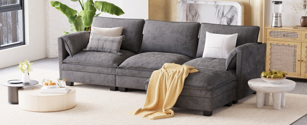 - The 3-seater sofa and ottoman are made of breathable skin-friendly fabric, seat cushions are equipped with pocket springs and high-density foam , cushions can't easily deform and can provide comfortable and soft support for relaxing.