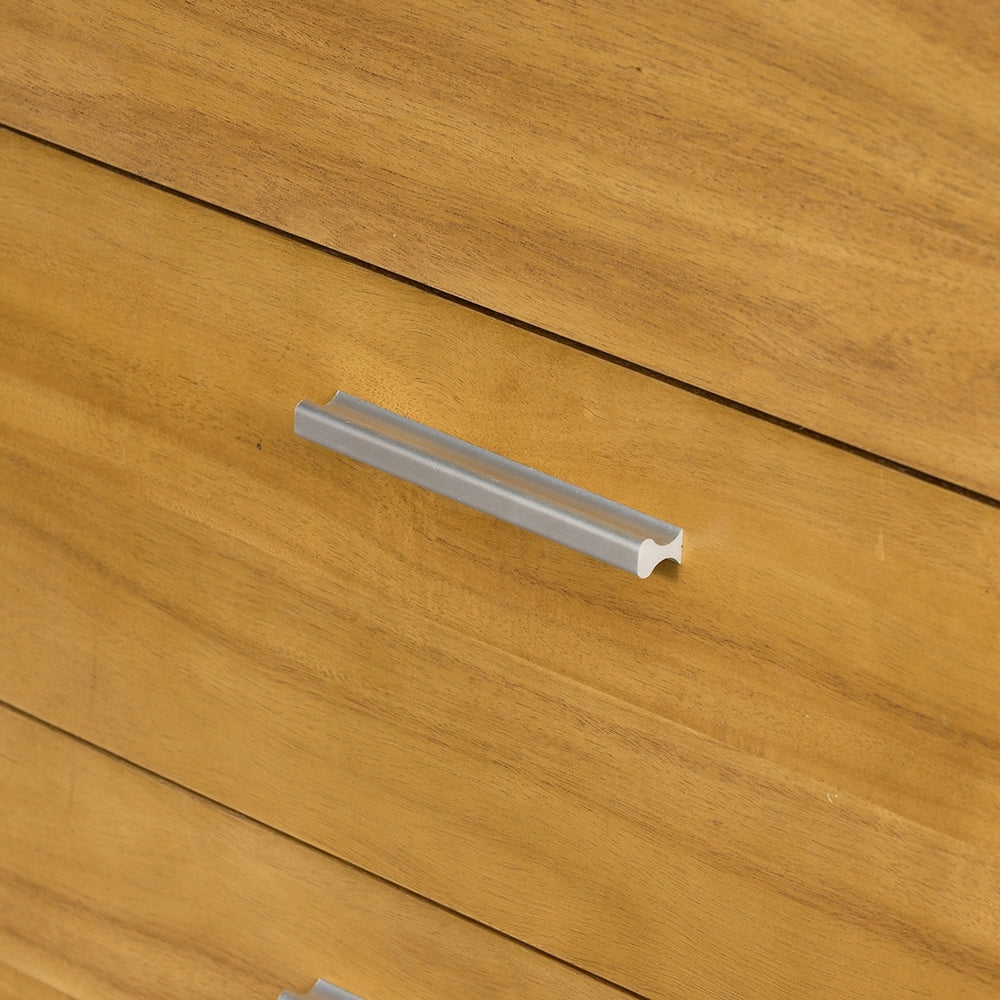 Simple in style but full of function, this wooden 5 drawer dresser will be a welcome addition to any room. Drawer handles and clean lines add a touch of modern design to your space.