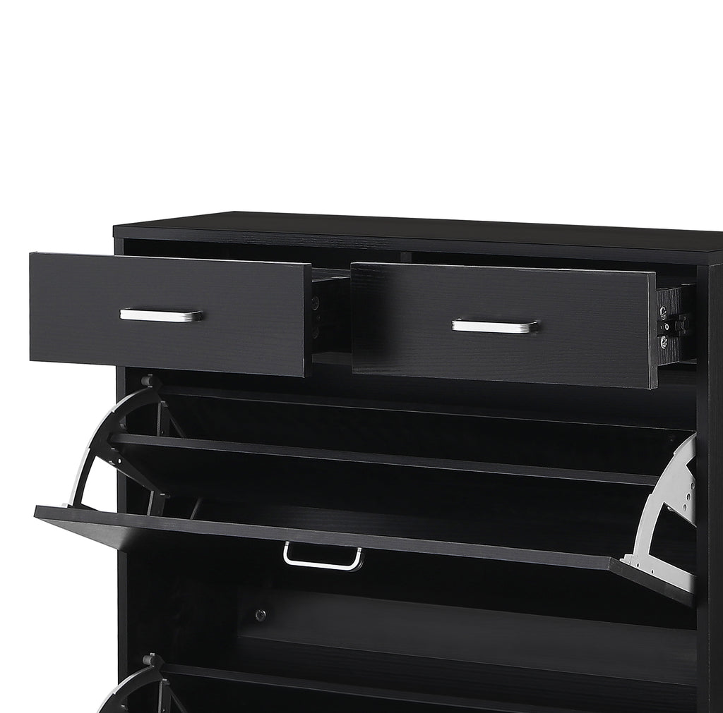 - 【User-friendly design】:Smooth handles are comfortable to touch and avoid scratching. Toppling preventing devices ensure safety when using the Freestanding shoe cabinet, while making the practical shoe cabinet and the wall fit better. The visually logical design of the flip drawer doors allows one to quickly find and remove shoes. Create a freestanding shoe cabinet from the user's perspective.