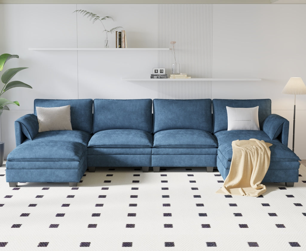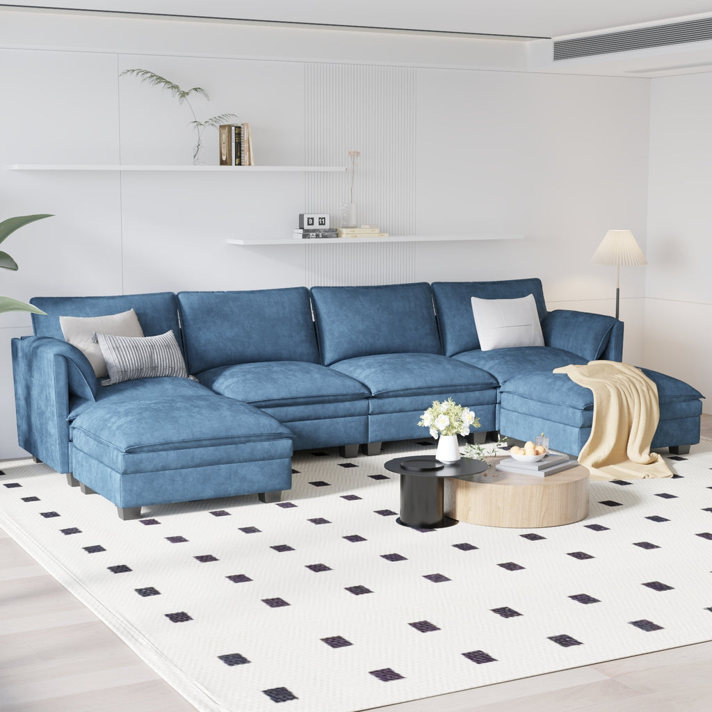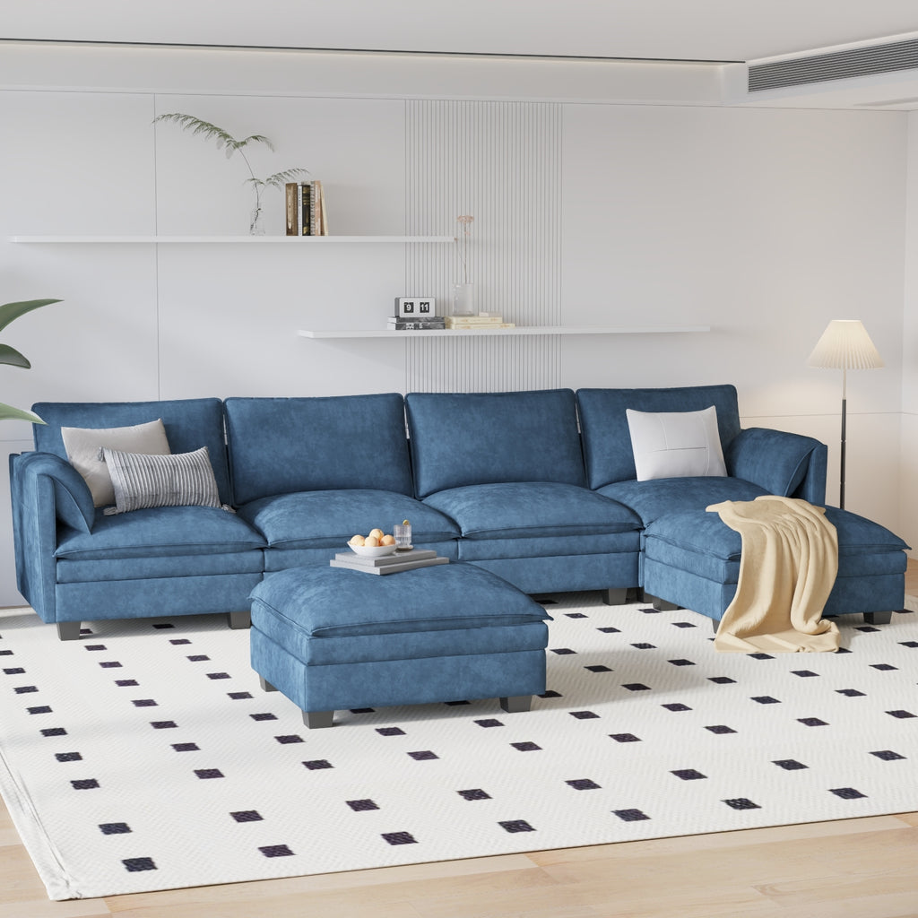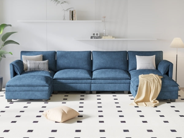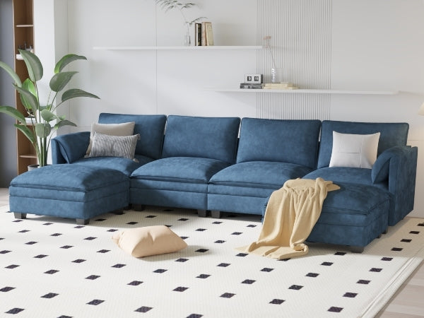 - The 6-seater sofa and ottoman are made of breathable skin-friendly fabric, seat cushions are equipped with pocket springs and high-density foam , cushions can't easily deform and can provide comfortable and soft support for relaxing.