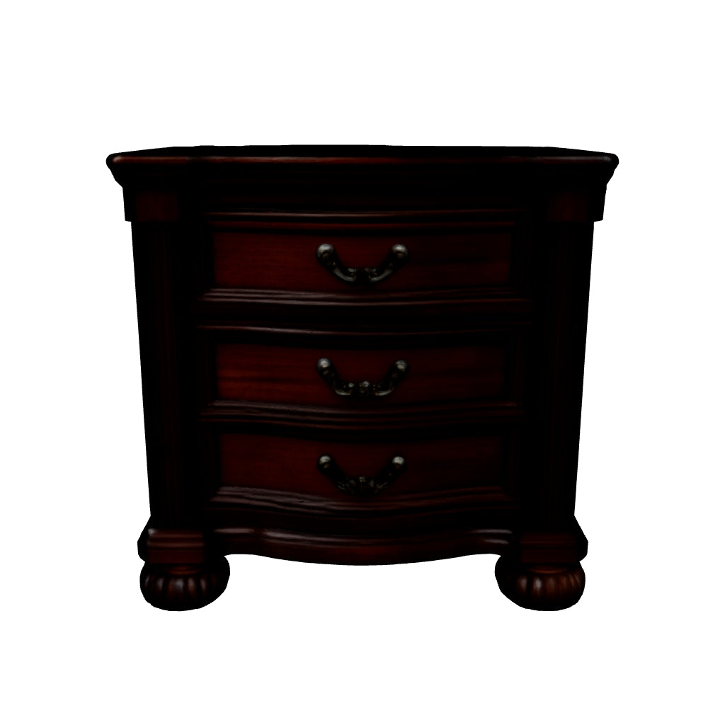 Take inspiration from the traditional luxury of this nightstand. Classic with a rich cherry brown finish, its stately presence graces your room with an air of opulence. Your taste for exquisite details is satisfied with decorative drawer pulls and chic bun feet. And with a hidden pull-out tray for valuables, bedside convenience has never been so refined.