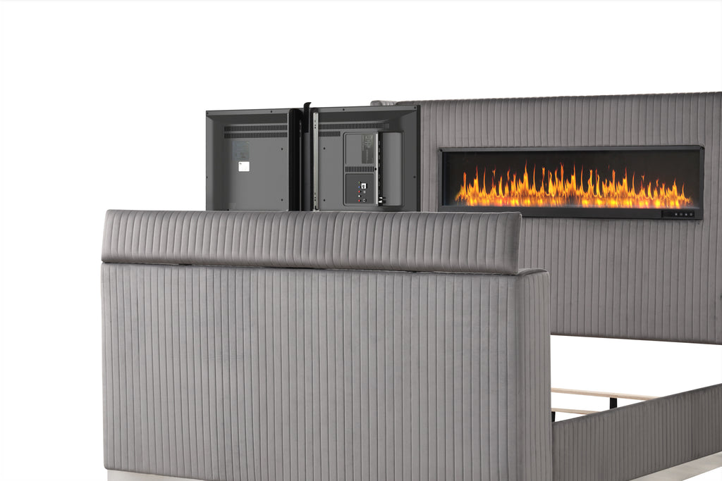 Lavish Modern Grey Queen Bedroom Set w/ Fireplace & TV Stand