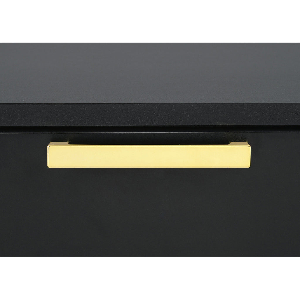 An ideal storage piece for making the most of small bedroom footprints, this modern glam black chest keeps garments and linens organized and tucked away in its shiny gold pull adorned drawers. Six stacked drawers create a stately, tall silhouette, elevated even further by the matching gold finish bracket legs that push the luxe aesthetic.