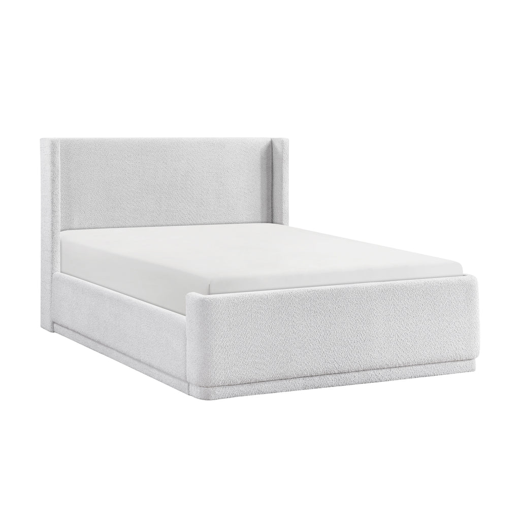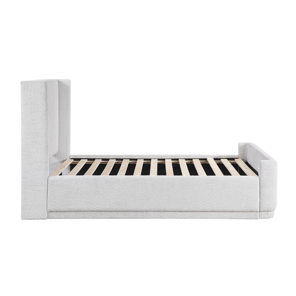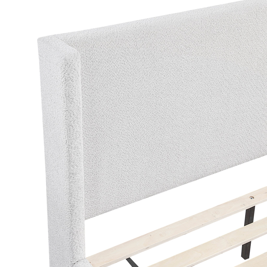 Elevate your bedroom's aesthetic with this stylish and practical modern platform bed, designed for both comfort and a contemporary look. Constructed with a durable plywood frame, this bed provides a sturdy foundation for a restful night's sleep. The elegant wingback headboard, upholstered in a beautiful textured fabric, adds a sophisticated focal point to your room. This complete bed set includes the headboard, footboard, slats, and rails, simplifying your setup. Best of all, a foundation or box spring is not required, allowing for a streamlined profile and direct mattress placement. While assembly is required, the sophisticated design and convenient all-in-one package make this bed a perfect choice for a chic and comfortable bedroom.