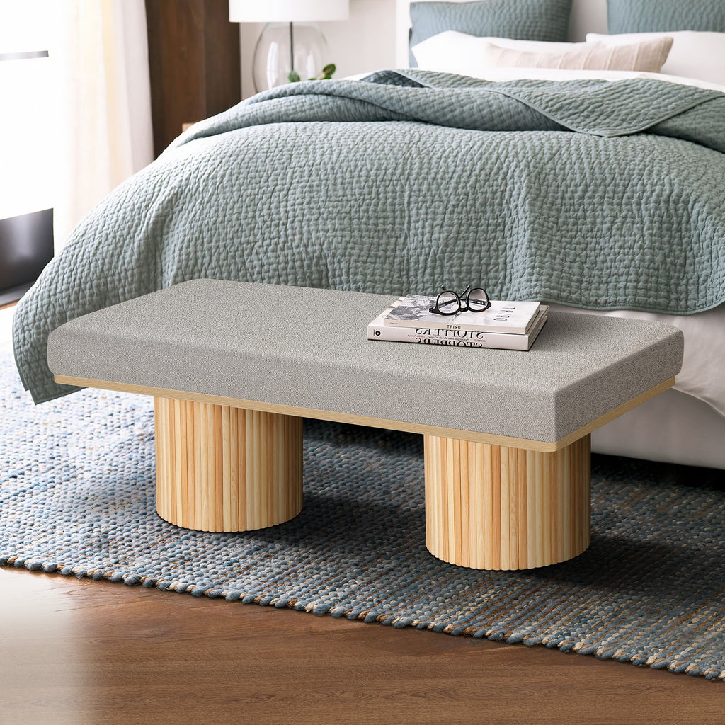 - Excellent Materials: This bench is constructed with high quality MDF boards and solid wood embossed lines around the chunky legs, making it capable to load up to 260 lbs. And the skin-friendly boucle fabric and 1.57' (4cm) thick high-density foam padding provide the maximum comfort when you sit on it.