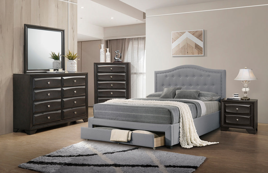 This general bed set is a must have. The chic and clean bed design immediately transform your bedroom into a designer's living space. With the carefully crafted design on the bed frame with color finishing that can match any rugs or nightstand, allow this exquisite bring out your character. The comfortable bed also comes with a underbed drawer for extra storage.