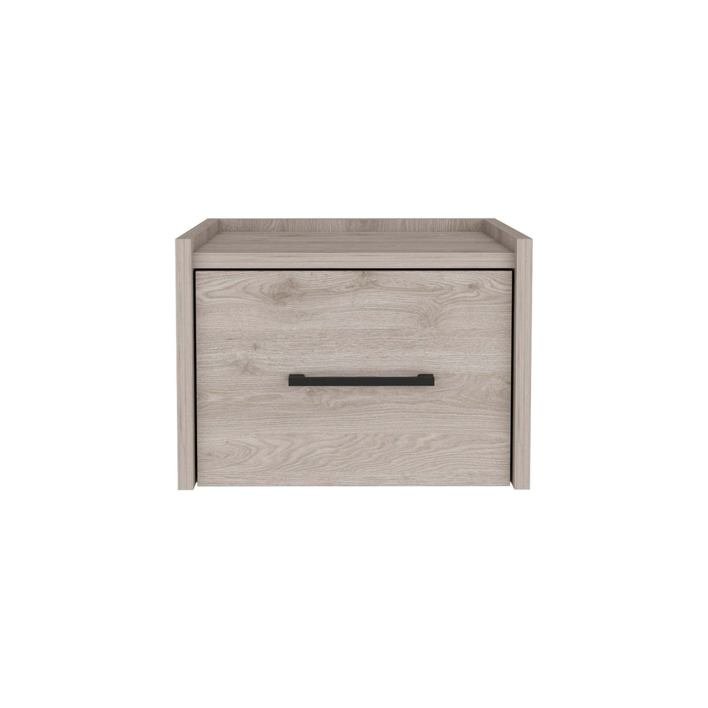 Light Grey Floating Wall-Mounted Nightstand End Table Single Drawer