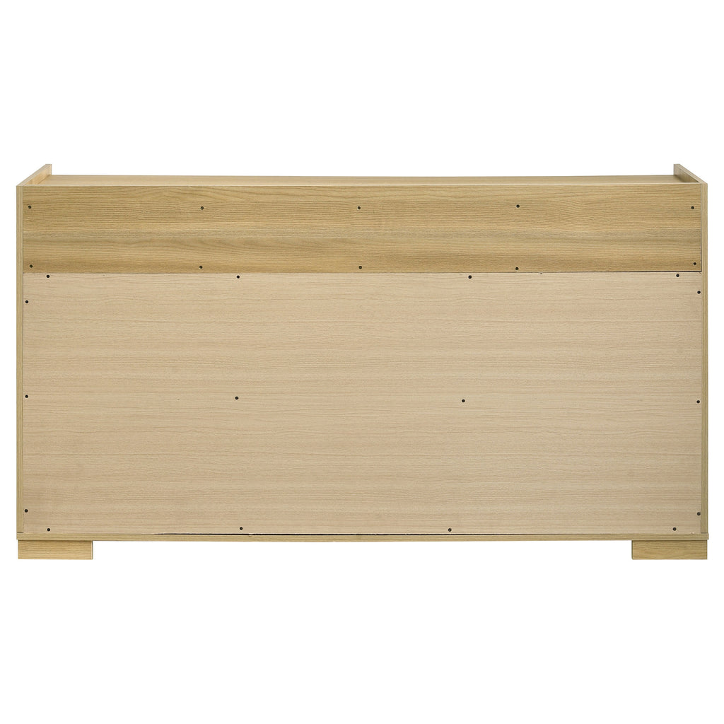 - Vertical lines on natural finish hardware add sleek sophistication, enhancing the dresser’s clean lines and contemporary aesthetic perfectly