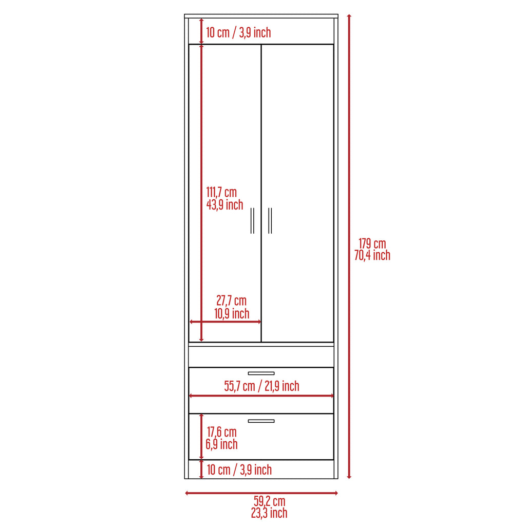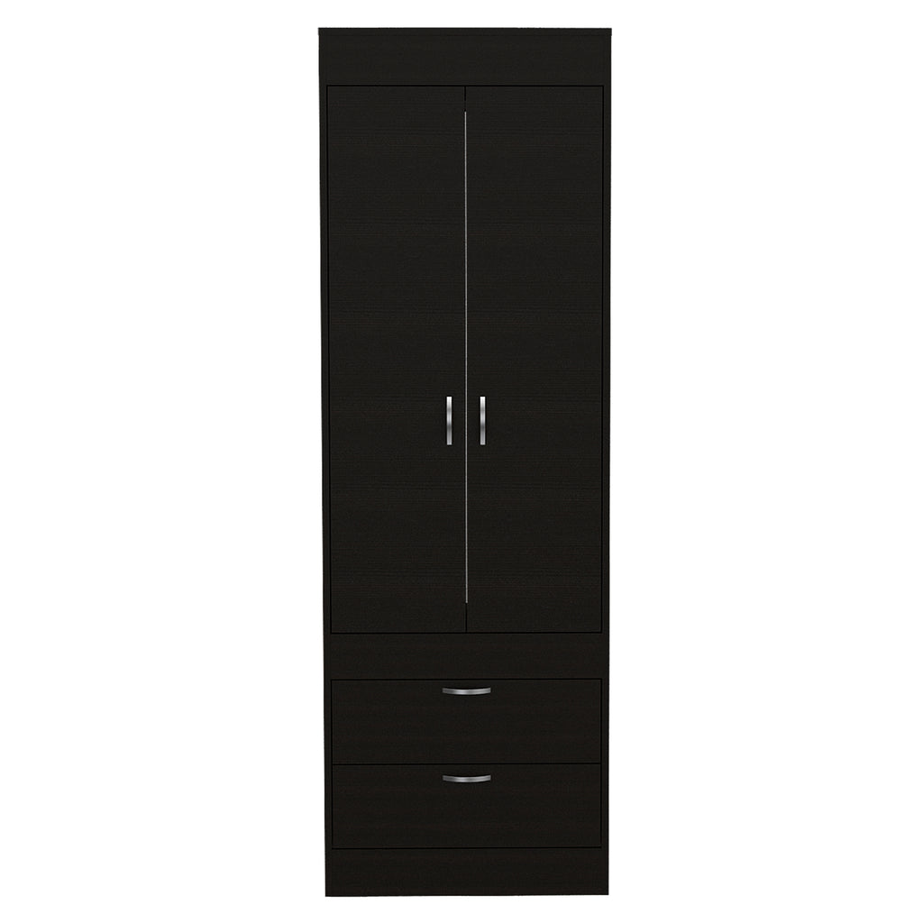 Lisboa Armoire: Double Door, Rod, 2 Drawers, Metal Handles