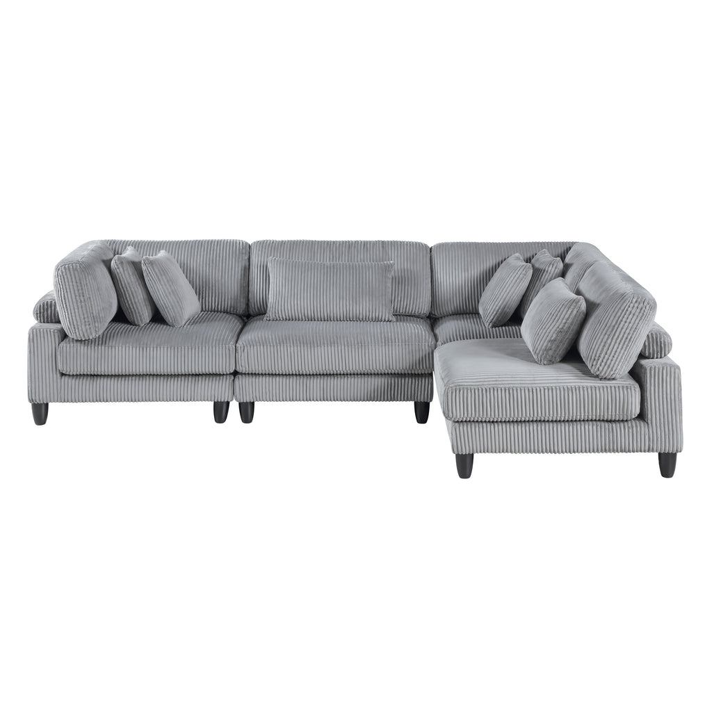 4-PIECE MODULAR SECTIONAL- GRAY CORDUROY FABRIC UPHOLSTERY