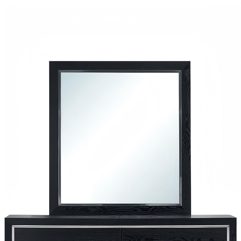 - This six-drawer dresser showcases refined design with bold black surfaces and understated brushed hardware, making it a versatile addition to modern or transitional bedrooms.